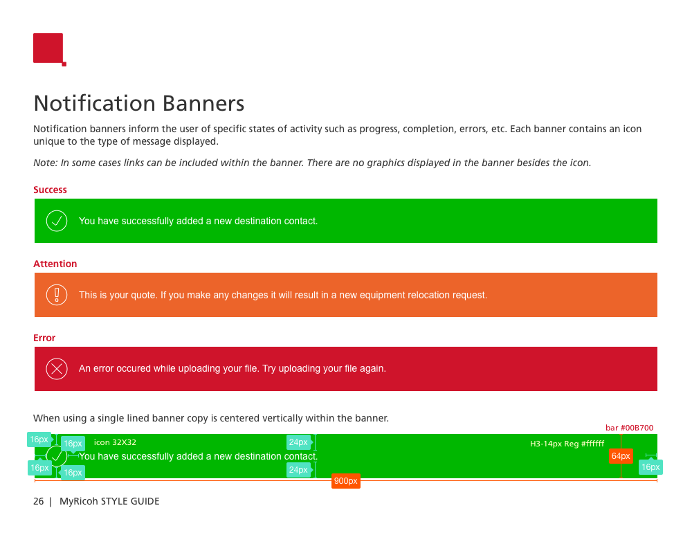 I was responsible for creating a much needed style guide for the MyRicoh product line.